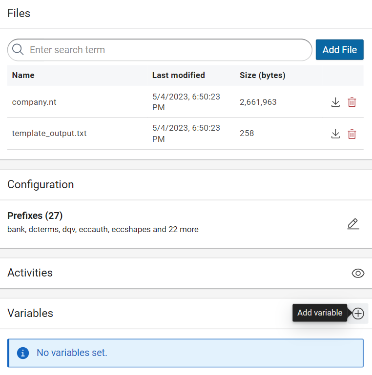 In order to allow the automation of activities with build variables from external processes, the Corporate Memory command line interfaces cmemc has a dedicated project variable command group for this.