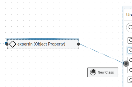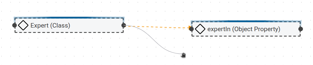 4. Click and hold the connector dot at the right edge of the class to begin drawing an arrow, then connect it to the connector dot at the left edge of the object property.
