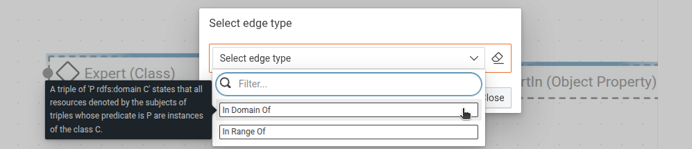 1. In the edge type selection window that appears, select In Domain Of.